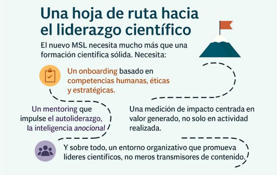 El MSL del futuro requiere un onboarding integral, habilidades humanas, pensamiento estratégico y visión ética. El mentoring y la medición del valor real son esenciales para evolucionar hacia roles de liderazgo científico orientado al paciente. Según McKinsey, el mayor reto de los departamentos médicos es evolucionar de una función reactiva a un liderazgo relacional, con el MSL como eje estratégico [7].