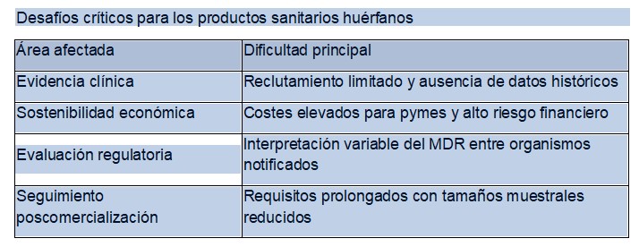Los productos sanitarios huérfanos son imprescindibles para abordar necesidades clínicas no cubiertas relacionadas con el diagnóstico, tratamiento o prevención de enfermedades raras, entendidas como aquellas que afectan a menos de 12.000 pacientes al año en la Unión Europea (UE), o están dirigidos a subpoblaciones muy específicas dentro de patologías más amplias.