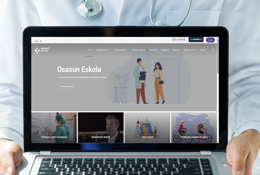 Gracias a la integración de la plataforma con la "Carpeta de Salud" de Osakidetza, el médico o enfermera puede "prescribir" contenido formativo específico. Un paciente recién diagnosticado de diabetes, por ejemplo, puede encontrar ahora en su perfil personal un curso online sobre alimentación, un taller sobre automedición de glucosa y guías interactivas, todo ello pautado directamente por su equipo de salud.