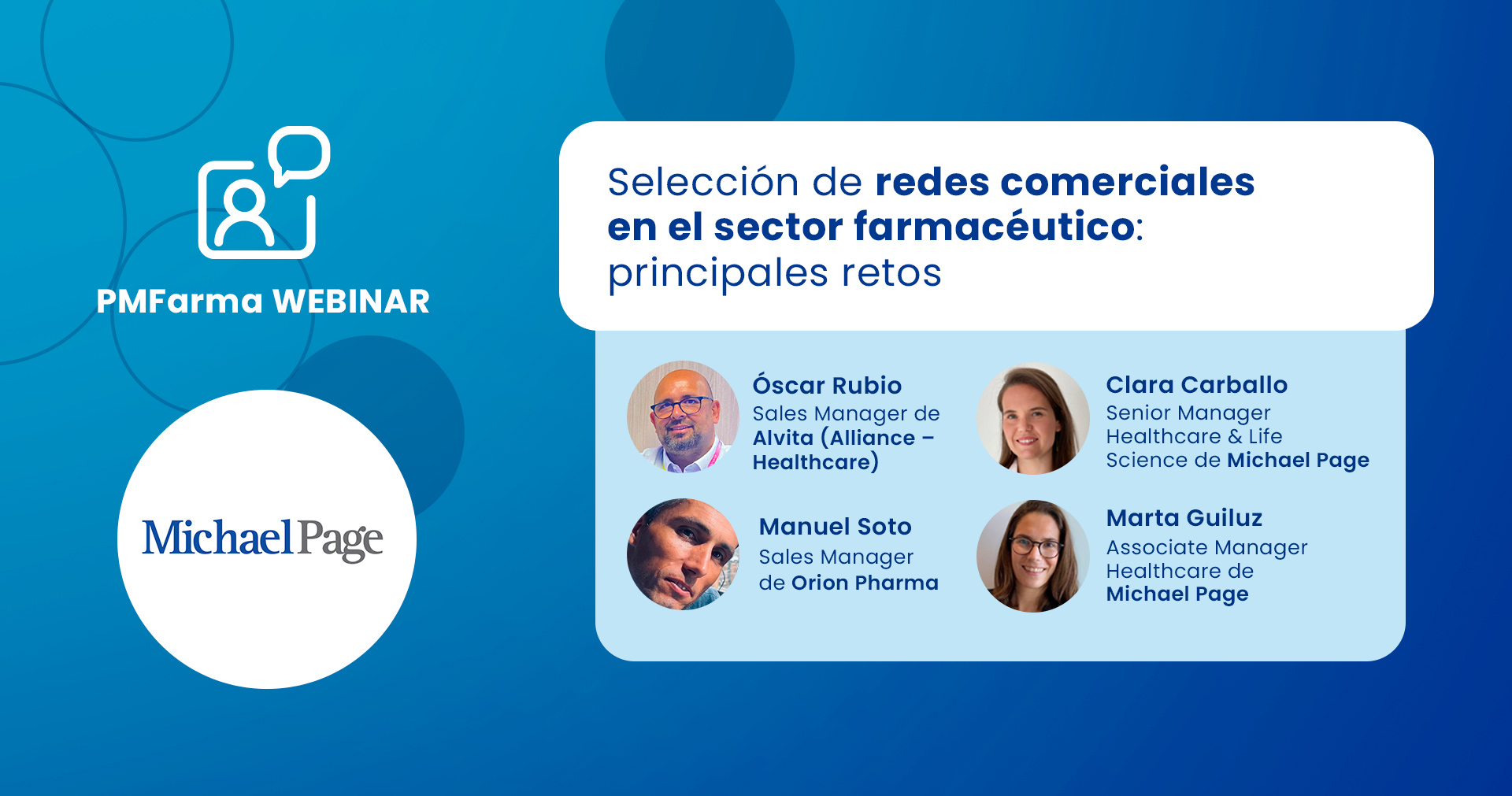 En este webinar abordaremos los principales retos actuales en la selección y gestión de redes comerciales dentro del sector farmacéutico. En un entorno cada vez más competitivo y en constante evolución, la capacidad de conformar equipos comerciales sólidos, especializados y adaptables se ha convertido en un factor diferencial clave. Junto a Óscar Rubio y Manuel Soto, analizaremos cómo está cambiando el perfil del delegado comercial, las competencias más demandadas y los desafíos a los que se enfrentan las compañías en la atracción y retención de este tipo de talento.